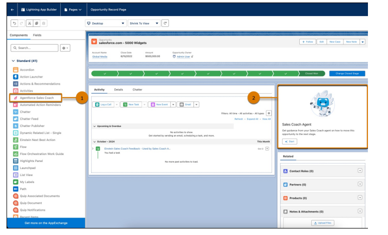 The Agentforce Sales Coach uses AI to analyze sales pitches and role-playing sessions, providing tailored feedback at various stages of the sales process: